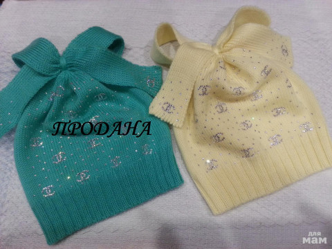 Весенняя шапочка с логотипом из страз БРОНЬ