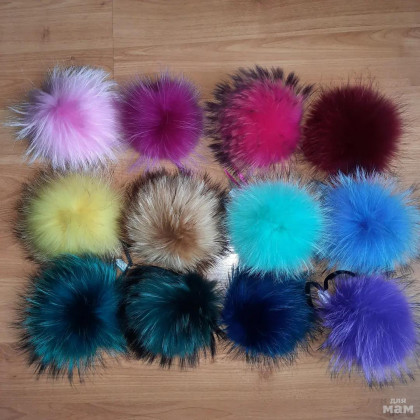 Помпоны из енота для шапочек