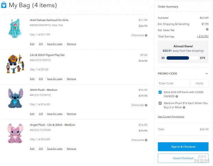 Скидка до 50%, плюс ДОП. скидка 20% на купальники и аксессуары для пляжа DISNEY!