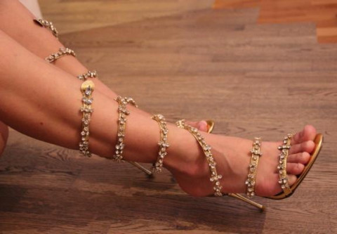Вечерние босоножки золотого цвета, инкрустированные стразами. Новые.