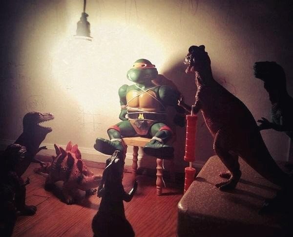 Девушка по имени Рефе Тума заставила своих детей поверить в то, что их игрушки оживают по ночам. Каждое утро она собирает новую инсталляцию с участием пластиковых динозавров так, словно они резвились всю ночь и резко замерли с появлением первого человека.