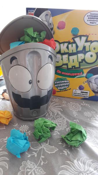 Я конечно ожидала , что оно будет побольше и в собранном виде.но пришлось поковыряться , чтобы его собрать. Бумажек намяли без усилии))) смешное оно и вправду бешенное. Озвучки никакой просто сумбурно ездит туда сюда и открывается крышка, чтобы закинуть бумагу, сделать это удается с трудом Ведро то чокнутое!!!))))