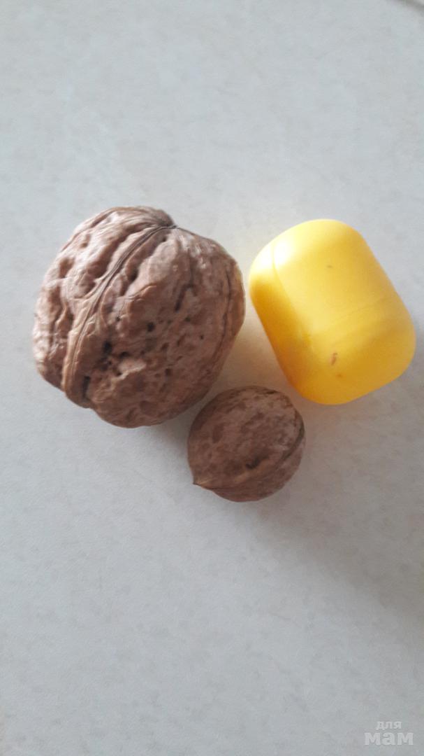 Этот чудо орех напомнил мне детство и передачу не помню как она называется🙈🙈🙈когда мальчик мультяшка раскалывал орех. Киножурнал хочу все знать что ли)))) .Орех настоящии не поддельный растет у знакомых в саду. Сьедобен)))) пару орешков и тортик посыпать не проблемка!!@ маленькии это обычный грецкий, а этот большой как 4грецких