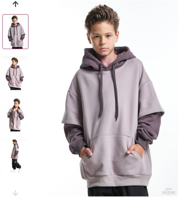 Худи джемпер с начесом с комбинированными рукавами 33-7481 беж/кофе