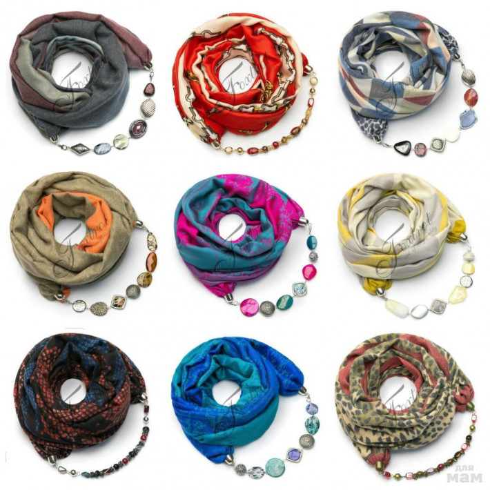 Основу ассортимента составляют шарфы и платки в комбинации с ожерельями, а также коллекции яркой и стильной бижутерии ручной работы. Дополни свой образ! Идеальный подарок на любой праздник!