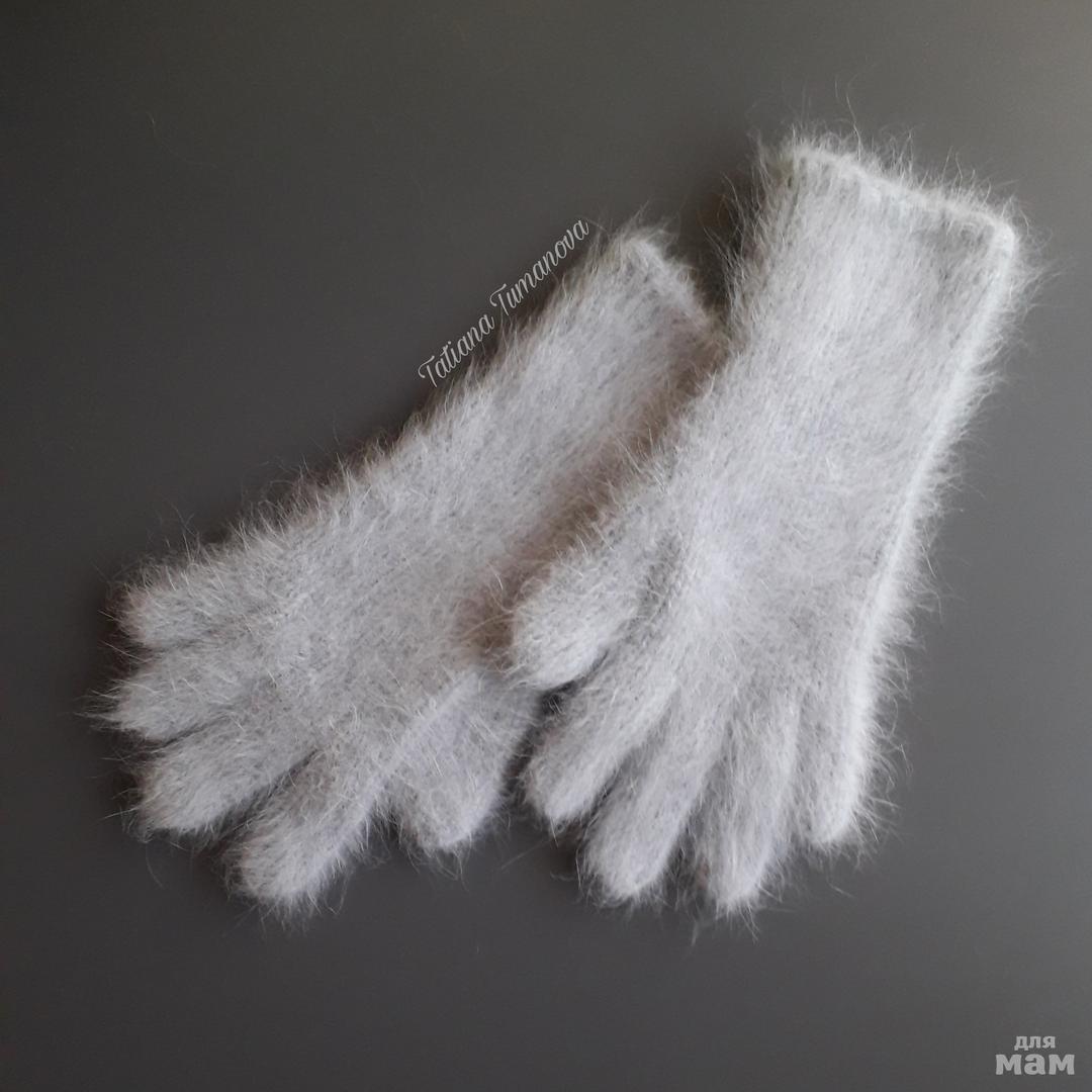 В наличии комплект шапочка и перчатки из ангоры в светло-сером цвете.