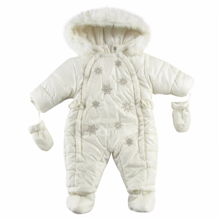 3. белоснежный комбез, с блестящими снежинками. 62 см