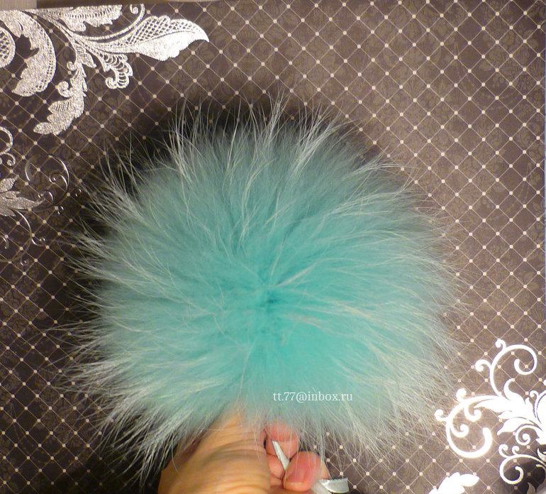 меховой помпон №00-0521.енот финский.цвет т.т.т.синий. размер- 19см. цена- 1500р.