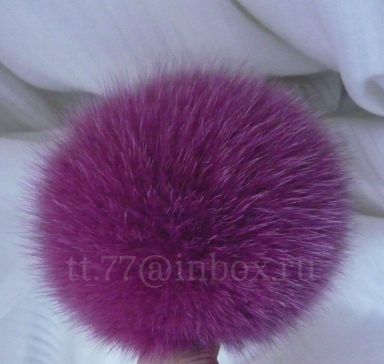 В наличии ещё есть помпоны из этого же меха. Песец. цвет фиолетовый:
