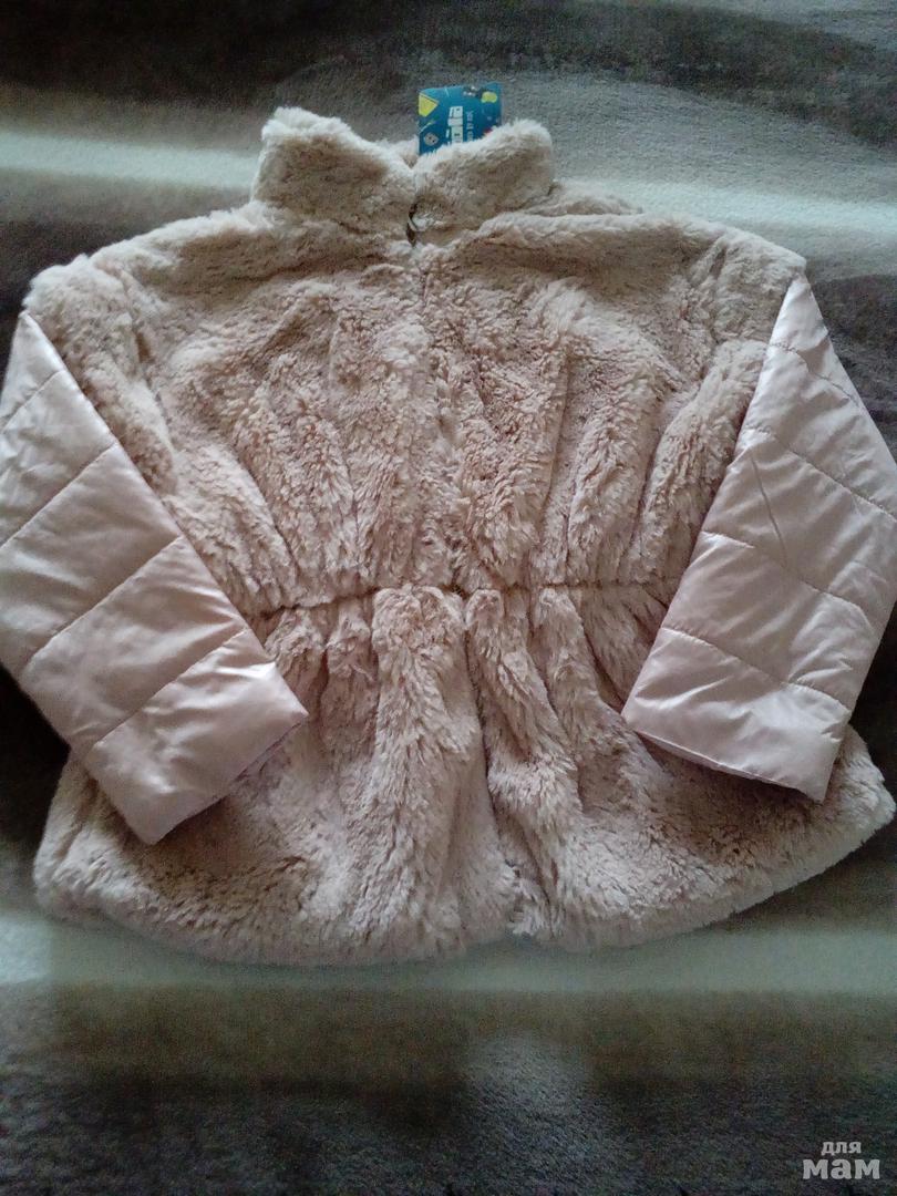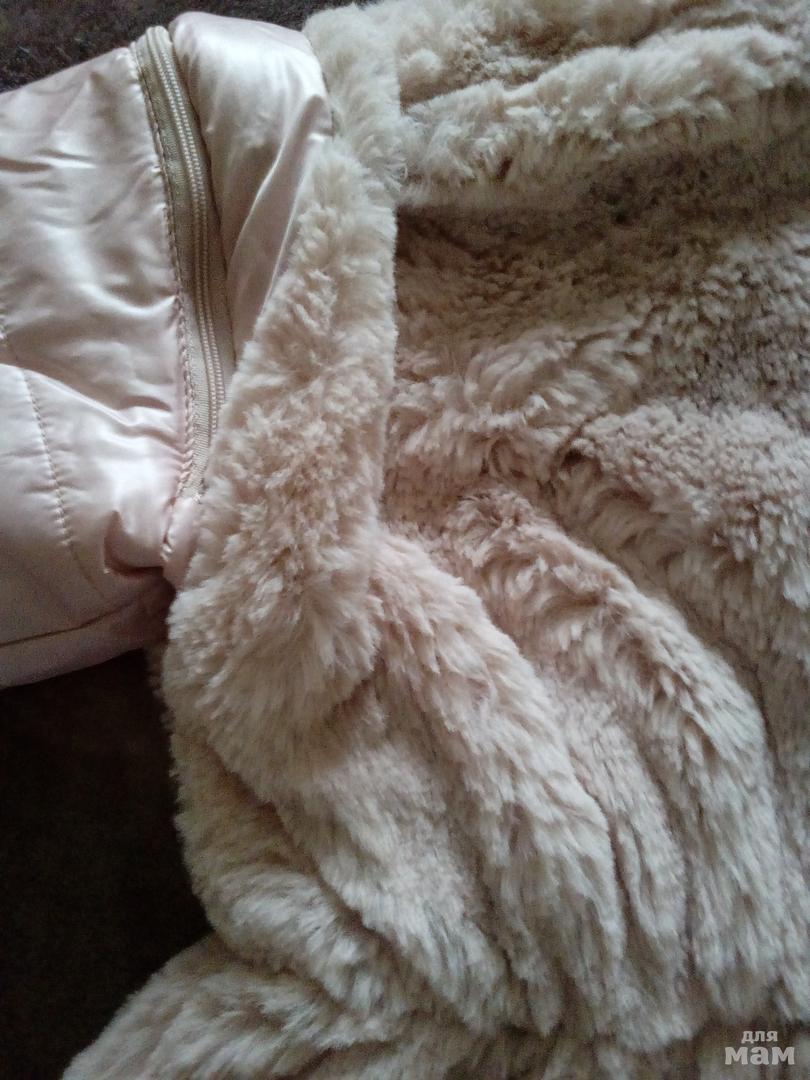 Курточка мягкая, пушистая, тёплая. Нежно- розово- перламутрового цвета.