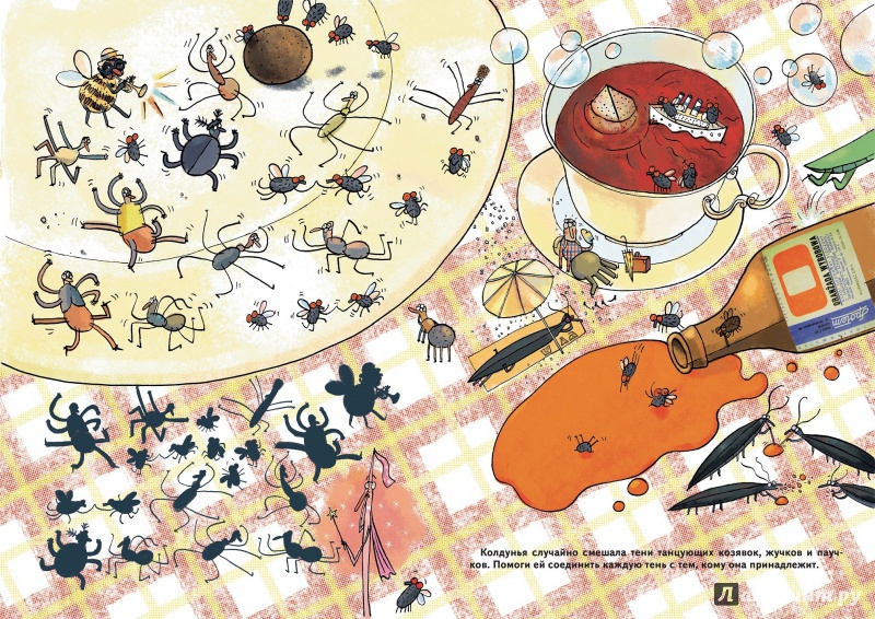 Создайте вместе рассказ о том, что происходит на картинке. Ребенок с радостью и любопытством будет разглядывать рисунки со множеством деталей, сможет отгадать интересные загадки.