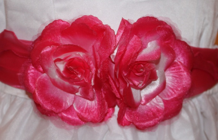 20. Очень нежное платье с лепестками роз внутри юбки и розой на поясе (отстегивается). пояс-бант - 116 см -2850