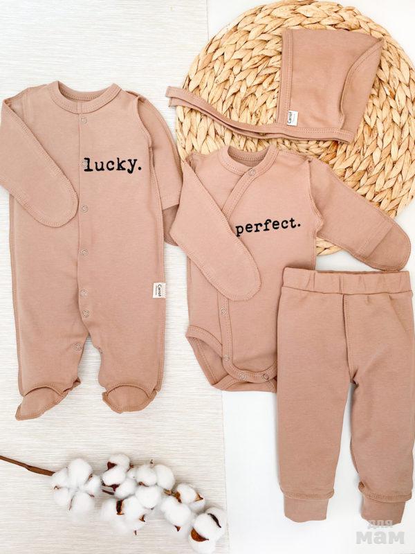 Комбинезон «Счастье внутри» темно-бежевый 1530 руб.