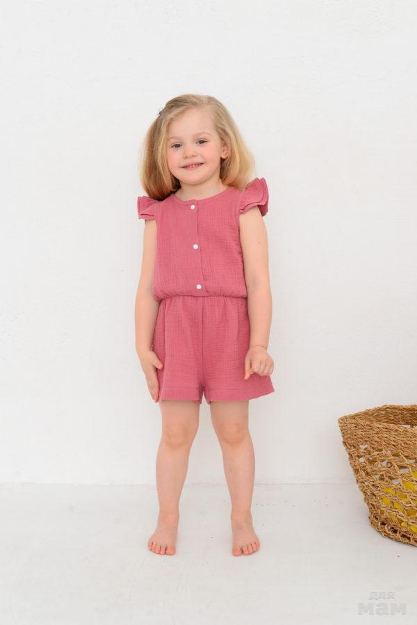 Полукомбинезон из муслина розовый в горошек 940 руб.
