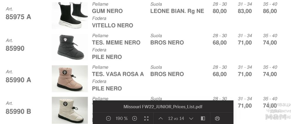 Итоговая цена- это цена прайса фабрики +2% перевод + 15% ОРГ . Для постоянных клиентов и при покупке более 3 пар - ОРГ-10 %
