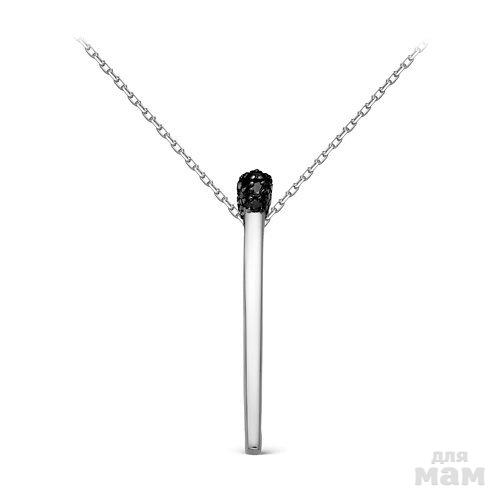 Серебряная подвеска "Спичка" с черными фианитами (без цепочки), цена 1308р