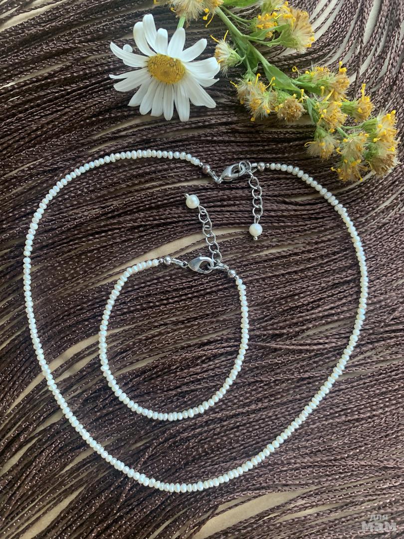 Хит этого лета❤️💣👍 Сет из украшений из натурального речного жемчуга подойдёт как нежным, романтичным особам, так и девушкам, которые любят выделиться из толпы💯Чокер и браслет из мелких бусин жемчуга отлично сочетаются, как с платьями, так и с джинсами💃🏽. Сет можно дополнить браслетом на ногу, что ещё больше подчеркнёт стиль владелицы этих украшений😍