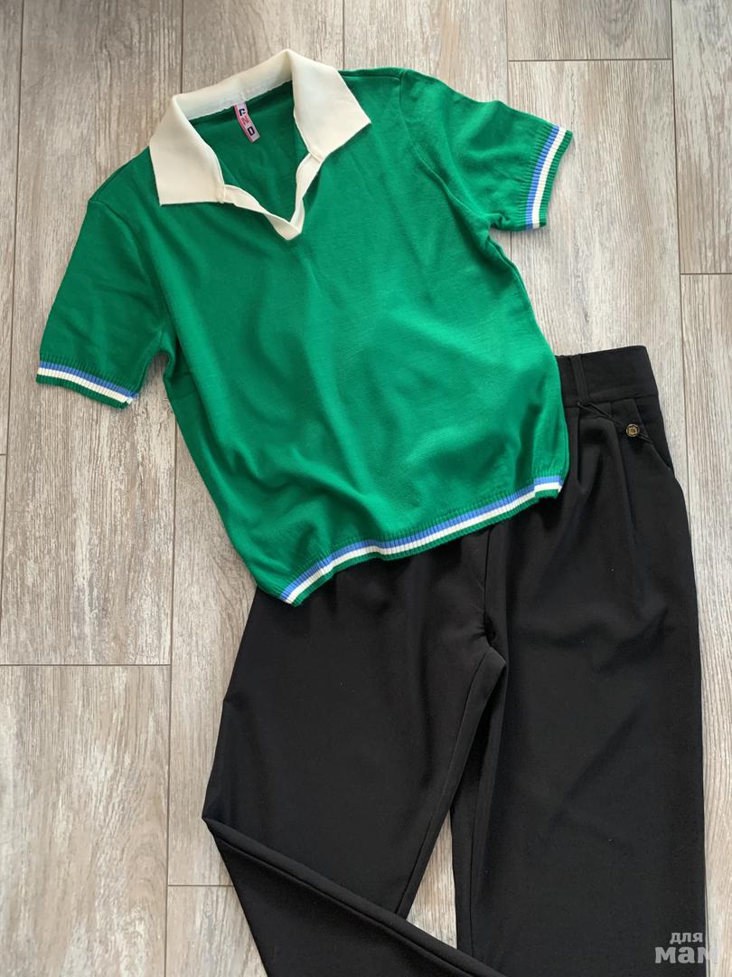 Брючки с защипами 1300👍кофточка-поло тонкий трикотаж уника 42-48 1300😍😍😍