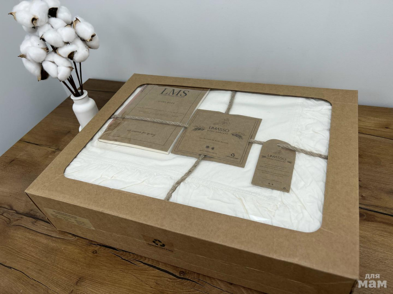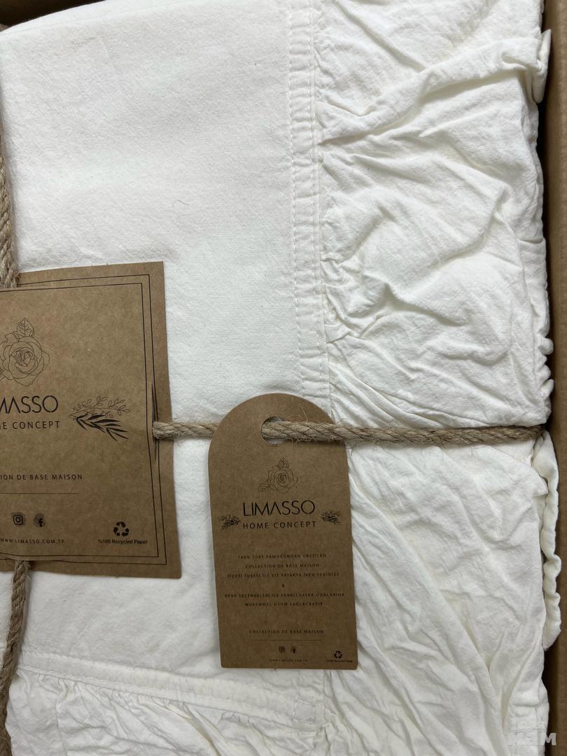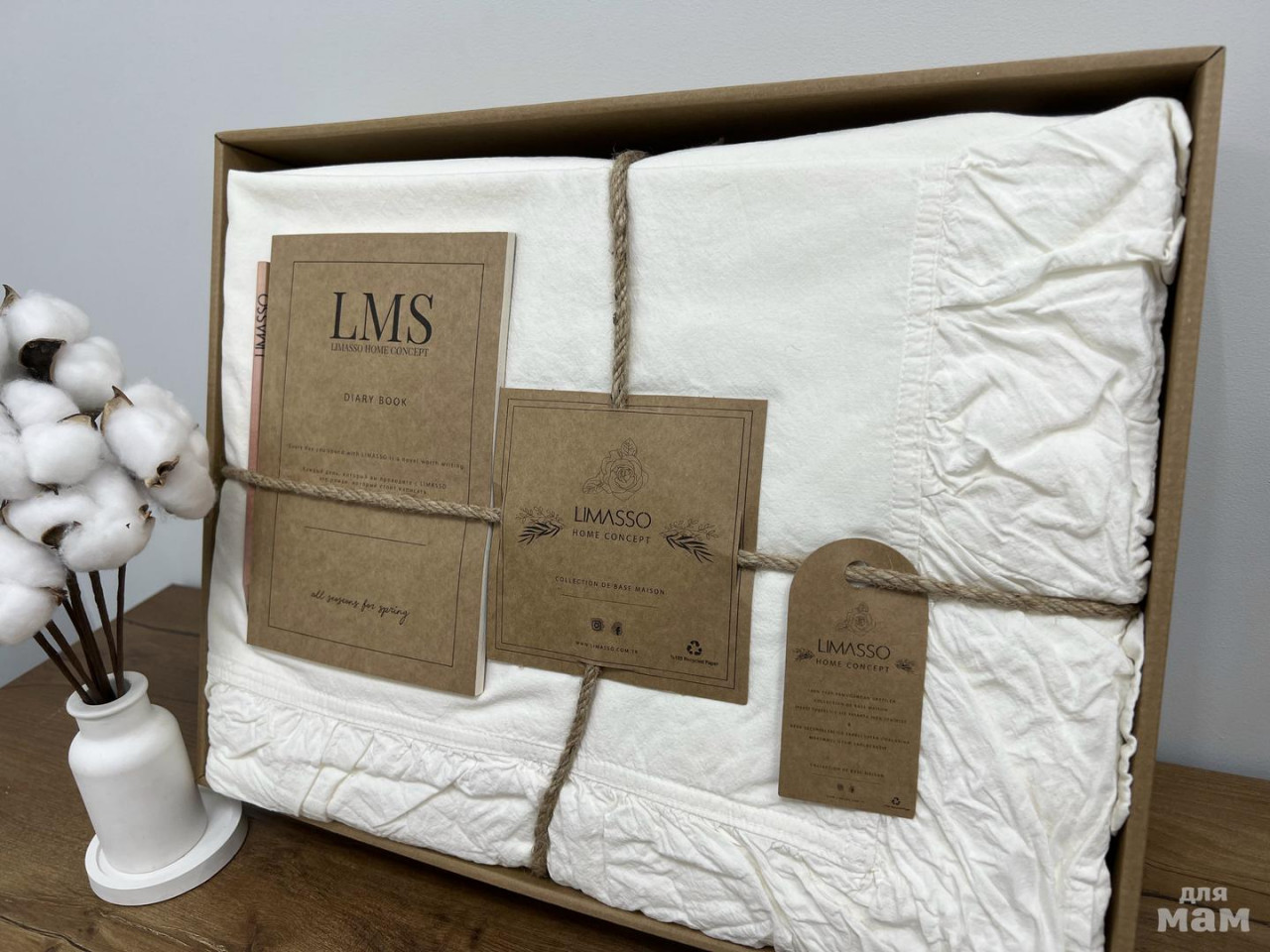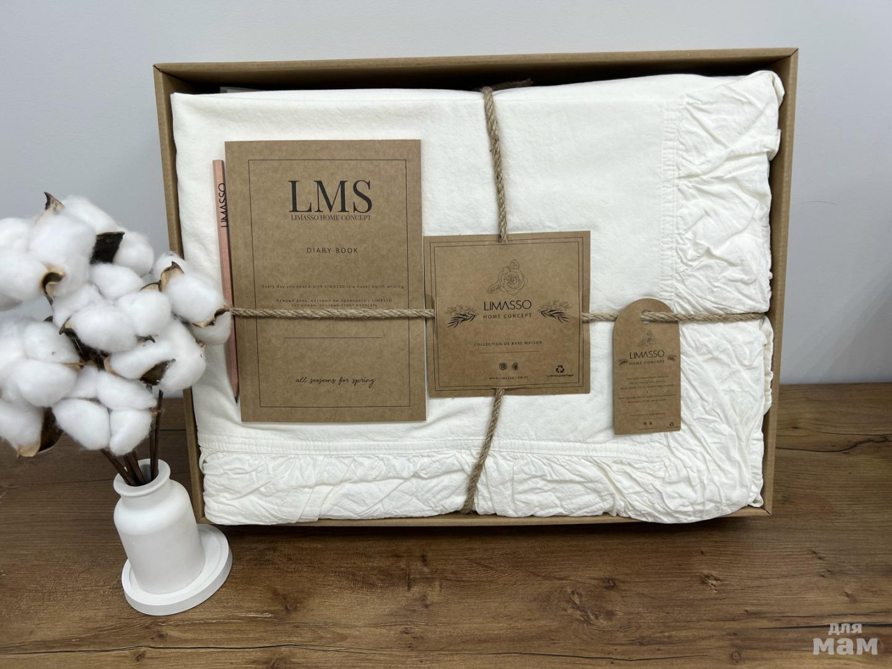 Нежное постельное белье из необычной ткани «вареный хлопок». Не требует глажки. Ткань на производстве подвергается сильной тепловой и влажной обработке, в результате чего происходит ее усадка с приобретением слегка жатого эффекта. Этот метод обработки ткани еще называют "стирка с камнями" (stone wash). Ткань прочная и легкая, не садится, не деформируется и не требует глажки. Особенность этой ткани, ее натуральность, приятные пастельные оттенки, мягкость. Дизайн постельного белья Limasso выполнен в стиле «Прованс» с милыми рюшами. Однотонная гамма цветов прекрасно сочетается с современным интерьером любого стиля. Фирменная подарочная упаковка из органического материала, в стиле Hand Made.