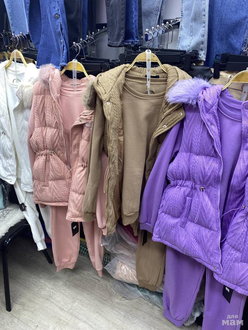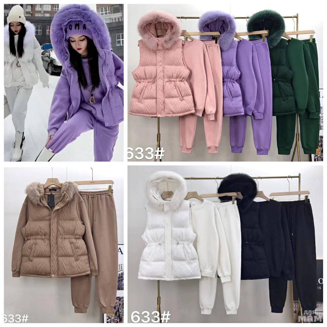 Размеры М Л, мех эко, на двойке не съёмный, на тройке съёмный. На тройке жилет с наполнением холофайбер.