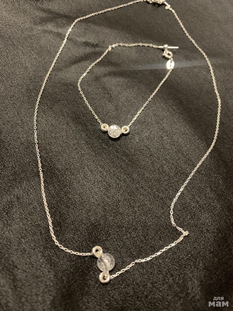 Очень нежный🤍 бусинка не закреплена, будет перемещаться по браслетику и колье😻 размер регулируете сами👌 Такого комплектика больше ни у кого не будет✨✨✨