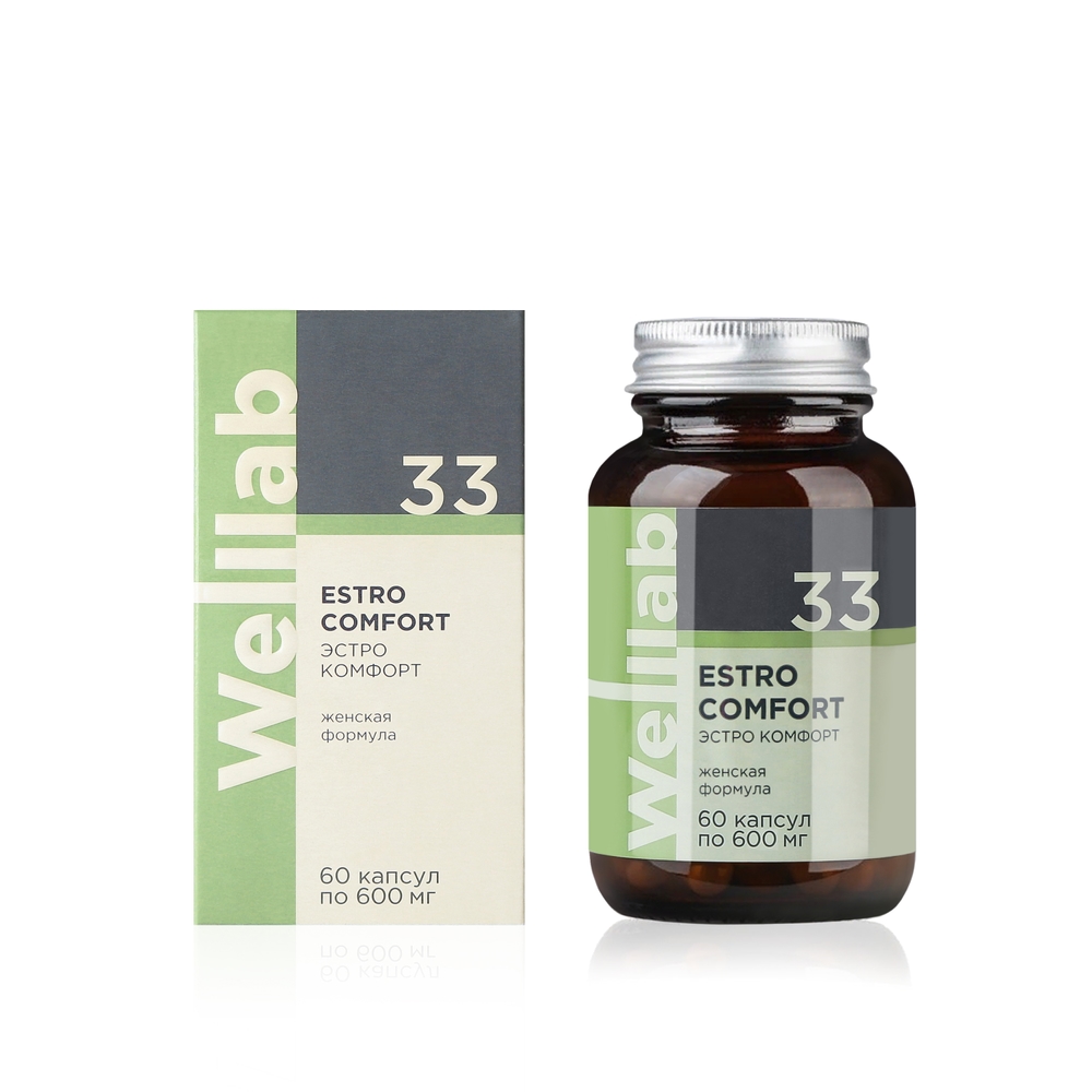 WELLLAB ESTRO COMFORT — биологически активная добавка к пище для женщин, содержащая комплекс фитоэстрогенов. По своему строению эти растительные молекулы сходны с собственными эстрогенами женского организма, но их активность во много раз ниже, благодаря чему они действуют мягко и постепенно, не вызывая резких гормональных скачков. БАД можно применять как женщинам в периоды пре- и постменопаузы, так и женщинам, испытывающим дискомфорт при предменструальном синдроме (раздражительность, подавленность, болезненность молочных желез и пр.).