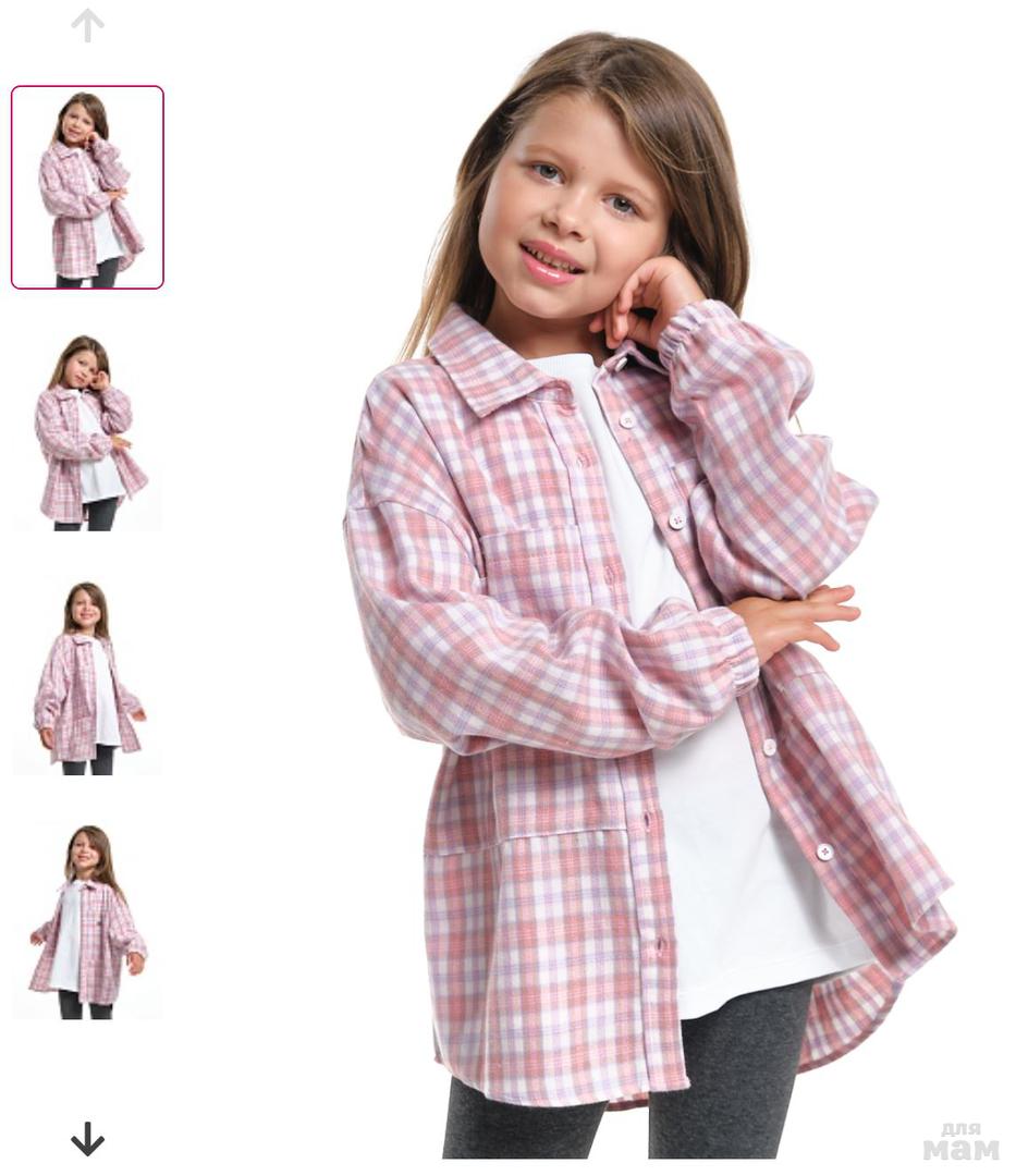 Рубашка one size в клетку для девочки UD 7992 розовая клетка