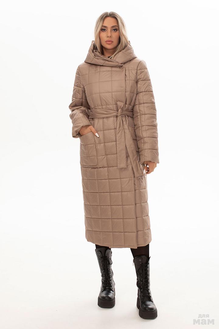 Пальто утепленное с центральной двубортной застежкой на пришивные кнопки, капюшоном. По переду- накладные карманы. Спинка цельная. Рукав втачной, двухшовный. Пальто со съемным поясом.