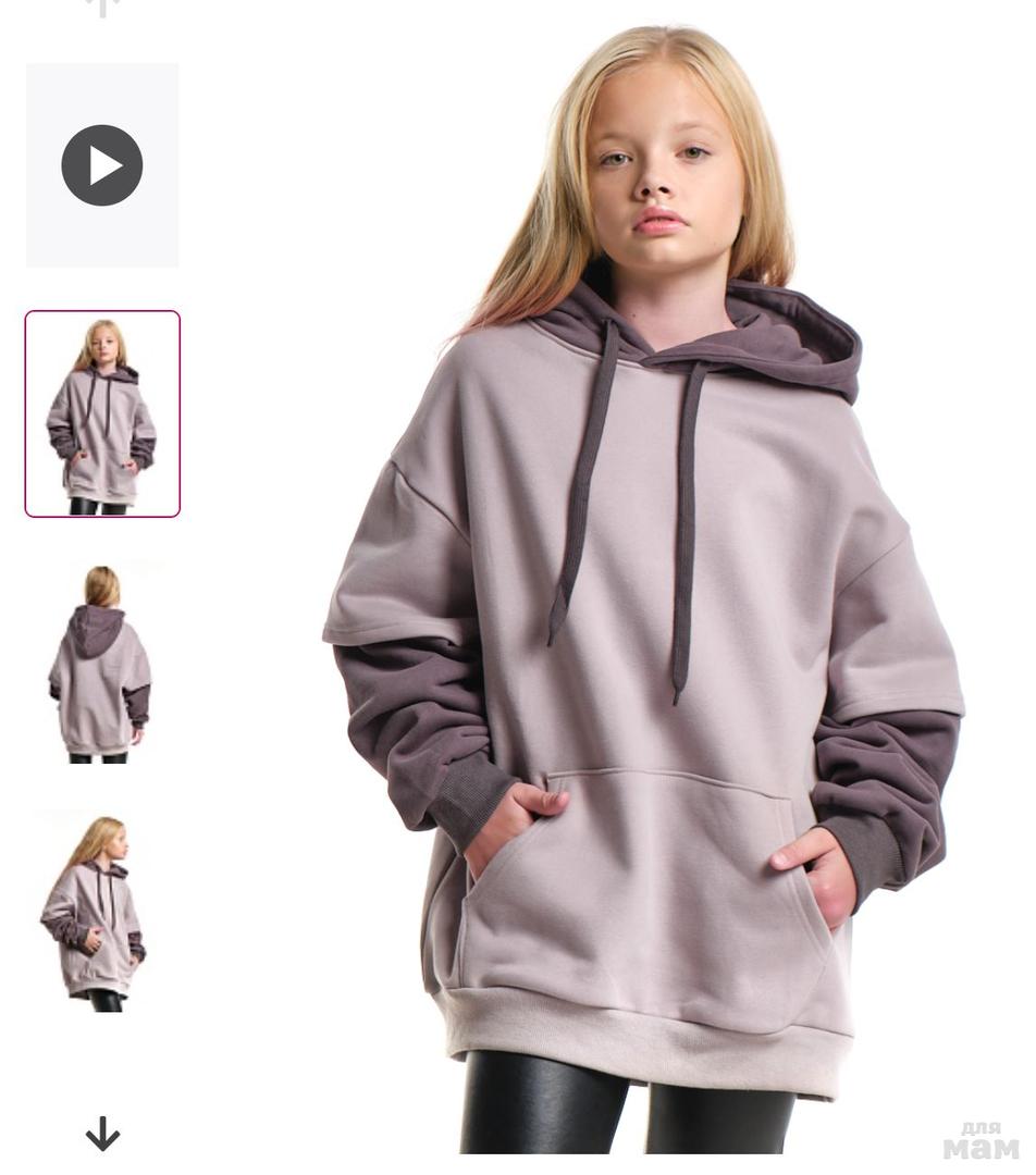 Худи джемпер с начесом с комбинированными рукавами 33-7481 беж/кофе