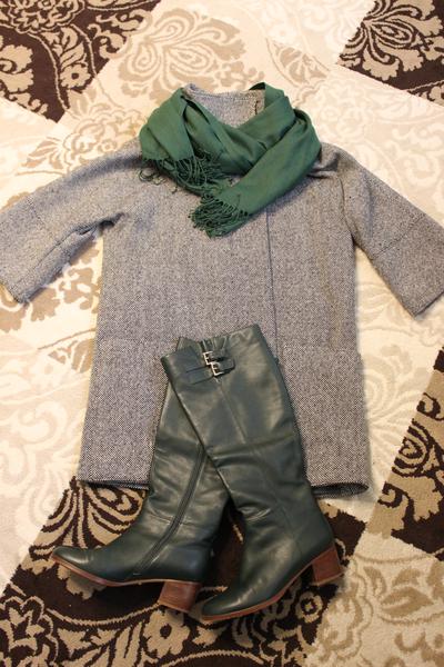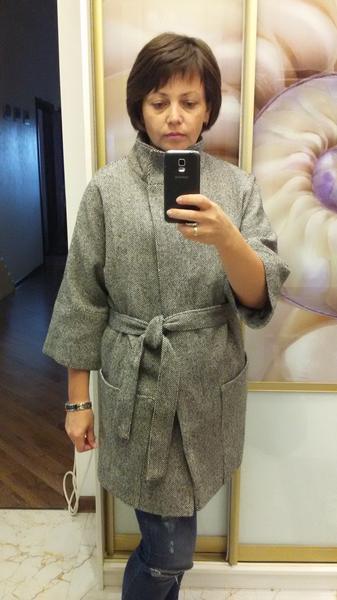 Надоели куртки... Хотела себе на осень купить укороченное серое пальто. Носить предполагала с зеленым палантином и зелеными сапогами... Но... не рассмотрела, что пальто из твидовой ткани в рубчик... я к ней не очень хорошо отношусь... вот теперь думаю, оставить или искать другое... Что скажете?