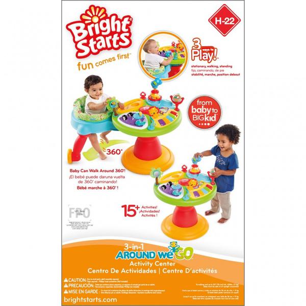 Игровой центр Bright Starts Зоопарк 360 прекрасно подойдет для детей возрастом от 4 месяцев до 2 лет. Уникальное сиденье, вращающееся под углом 360 градусов, позволит ребенку гулять вокруг столика для игры. Данное сиденье очень легко убирается, благодаря чему появляется возможность использовать только игровой столик. В развивающем центре имеется специальный сектор пианино, который имеет возможность работы в нескольких режимах: различные звуки, мелодии и пианино. Игровой сектор позволит играть с бусинками, рыбками, большим львом, веселыми выпрыгивающими пингвинами, с юлой-слоненком и прочими занимательными игрушками. Также столик имеет подставку для бутылочки или поильника, чашки и тарелочки - тут карапуз сможет с комфортом перекусить.