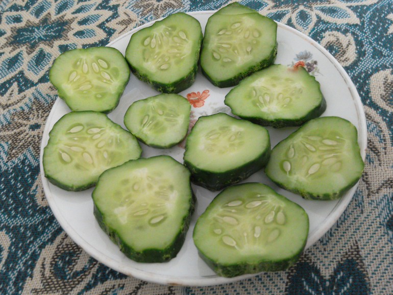 Набрав на грядке у мамы свежих "домашних" огурцов я приступила к косметическим процедурам.Вот они мои огурчики.