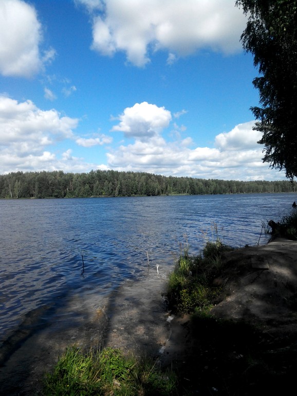 В субботу к нам присоединился наш папа и мы решили немного побыть вдвоём,оставили малышку на попечение бабушки,а сами рванули на природу,на водохранилище возле Десногорска.Взяли лодку с мотором и катались аж целых 2 часа.Так приятно в такую жару находиться на воде,когда тебя обдувает лёгкий ветерок.Покатавшись немного я осталась на берегу,а муж поехал дальше "прыгать на волнах".Я тем временем отдыхала,дышала чистым воздухом,смотрела на солнышко и улыбалась.