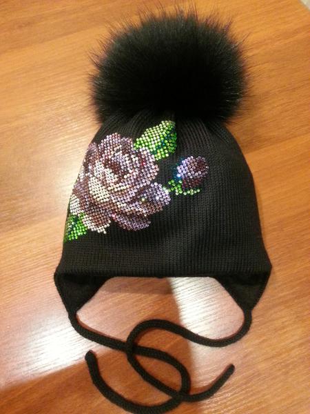 Вяжу на заказ шапочки с ручным декором из страз под любые курточки, пальтишки, коминезончики