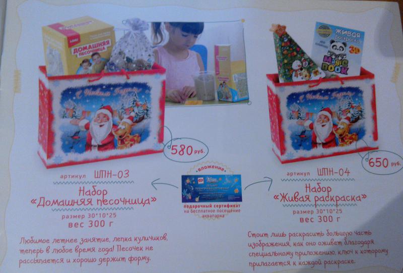 Помимо подарка в комплекте почти везде идет Подарочный купон на 2 часа в аквапарк для детей с 5 до 13 лет). Если не малышам - то страшим братьям и сестрам приятно будет :)))