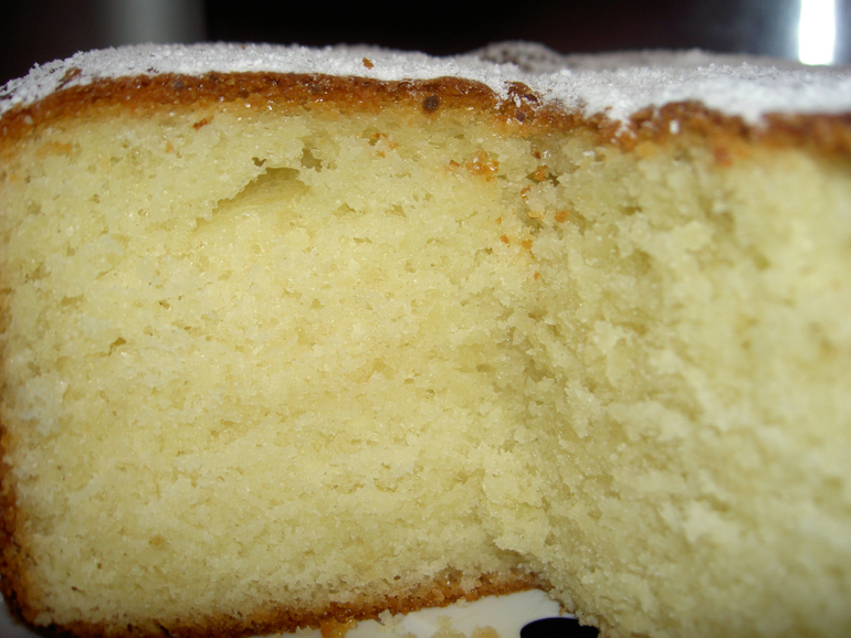 Слегка охладить кекс, затем обсыпать сахарной пудрой.
