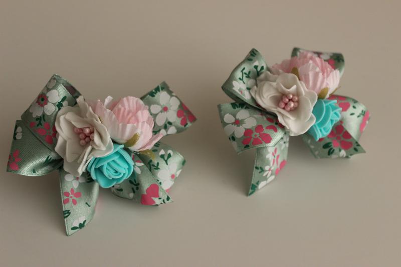 6.Резиночки с цветком и жемчужными бусинами. Украшены маленькой подвеской-стразой. 100 руб./шт.Света