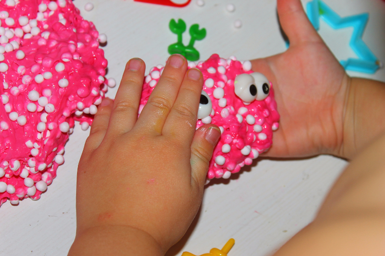 Что понадобится: тетроборат натрия (бура), клей ПВА, краситель по желанию и гранулы полистирола (за неимением его можно заменить на пшено или, например конфетти,овес,просо и т.п. или растерзать для этих целей подушку с этими гранулами, в ФиксПрайсе есть)