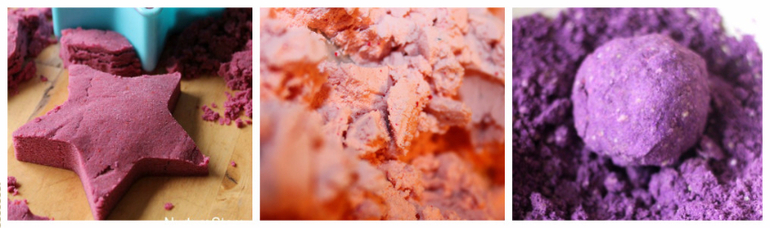 Как сделать: В миску с мукой добавлять детское масло понемногу и разминать руками, доводя до однородной консистенции. Когда масса будет готова, для придания цвета натрите на крупной терке цветной мелок и также распределите руками, разомнув наш песок.