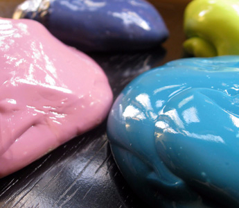 Что понадобится: клей ПВА-М (именно "М",это важно!!), тетроборат натрия (бура), краситель по желанию.