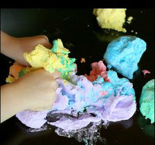 - Если игра с содой, то можно поливать ее уксусом (но он сильно пахнет) или разведенной лимонной кислотой и наблюдать извержения