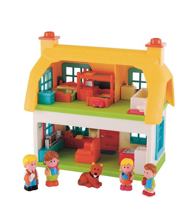 Двухэтажный домик со встроенной мебелью и реалистичными звуками дверного звонка, телевизора, телефона и плиты. В наборе - семья из 4-х человек и собака. Играть ребенок может один или с друзьями. Развивает воображение ребенка, повышает способность мыслить, создавать новые образы и фантазировать, способствует развитию социальных навыков, побуждает ребенка исследовать и понимать окружающий мир. Материал: высококачественный пластик. Размер упаковки: 19,7 х 47 х 34,1 см