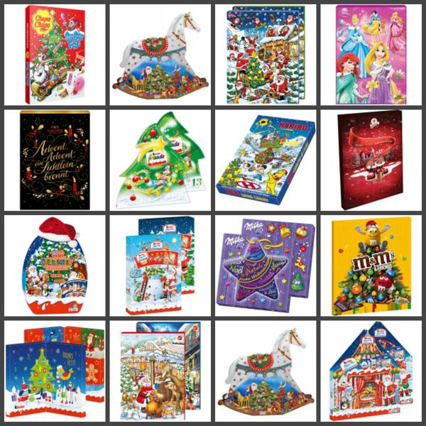 Шоколадные книжки с окошками - т.н называемые Адвент-календари можно разглядывать часами, а внутри ждут около 20-30 шоколадных сюрпризов - от 1,29Euro