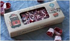 22. Лукум-фитиль с ароматом граната и арахисом, фасовка по 200гр. Коробка №3(прямоугольная, вытянутая с ретро трамваем), 99 руб
