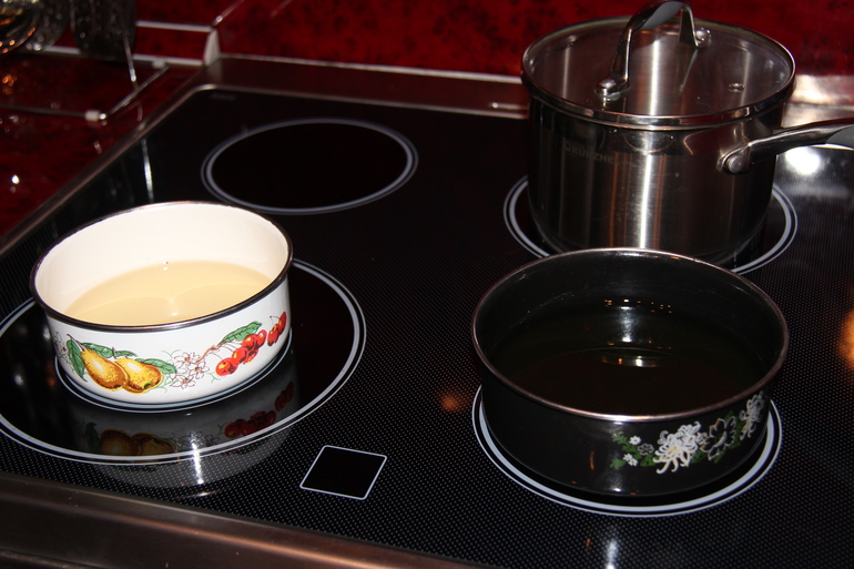 Затем в чем-нибудь большом чтоб удобно было мешать (ну это у нас,а нормальные люди немного делают
