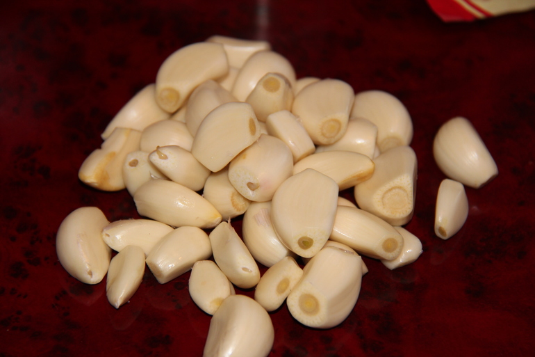 Чистим чесночок,эх красота у кого он домашний,у нас вот такой Китайский.Чесночок в мясо через чеснокодавку.