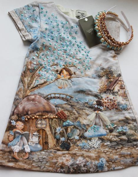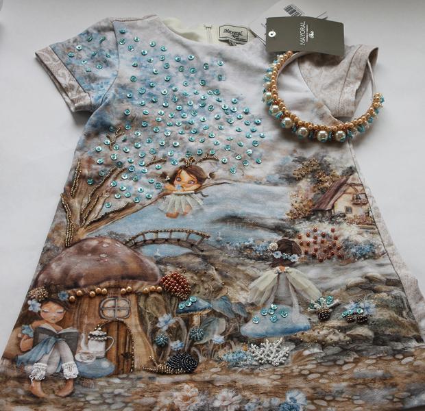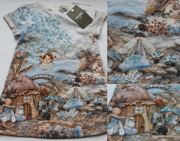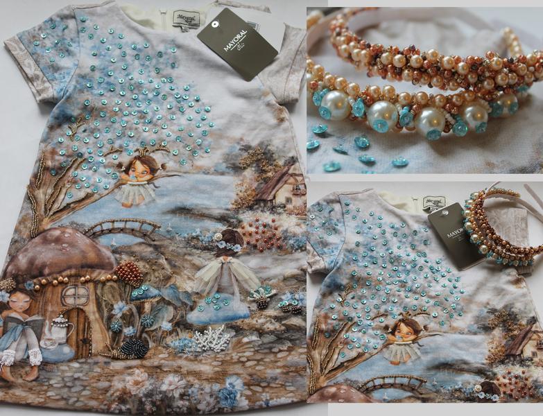 Слишком простеньким мне показалось платье Mayoral, не хватило мне в нем блеска и объемности Расшила бисером, пайетками, бусинами и т.д. Теперь другое дело!