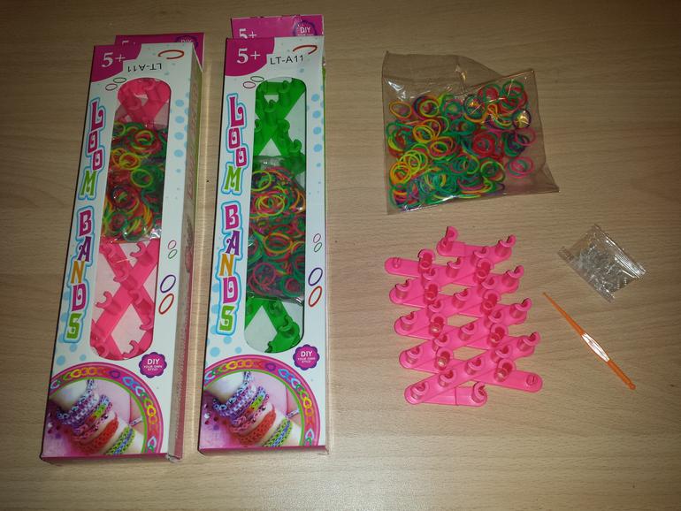 Все наборы с S-клипсами, крючком. Есть и со станками. Резиночки яркие и прочные!