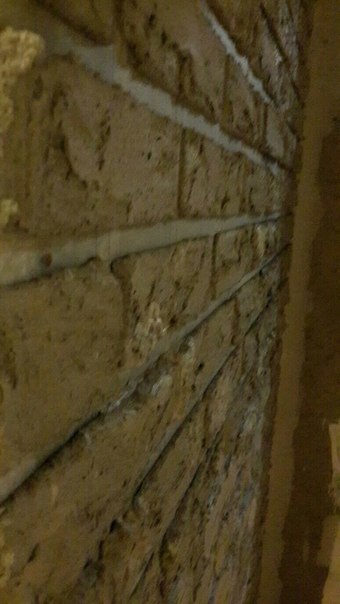 СНИЗУ ВВЕРХ наносим прямо руками! смесь,которая у нас получилась)) после нанесения шпателем выровнять поверхность. сразу же отклеиваем скотч!!пока все нафиг не засохло)) примерно такая вот картина получается: