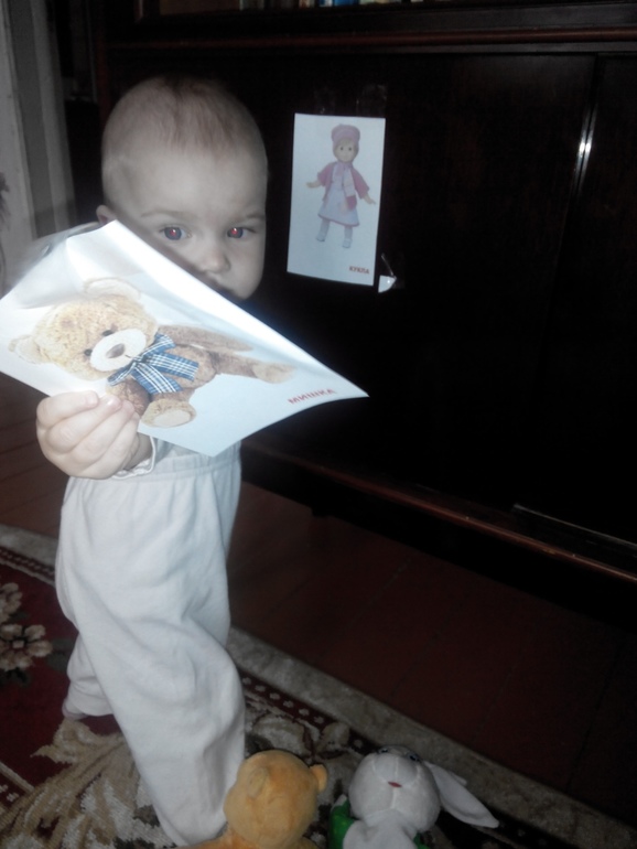 Утро началось с зарядки с мишкой под музыку,но шагать как-то мы не очень хотели,а вот ручками покрутили.Далее на тематической стене мы посмотрели куклу,мишку и зайку.Эти игрушки она знает,куклу мы даже называем,ляля.Я её так научила.Мне очень нравится,когда она своим детским голосом говорит ляля.Лиза воспринимает ляля как имя куклы.Кукла Ляля.С мишкой мы часто играем в обнимашки,а зайку мы жалеем,гладим его ручкой.Только гладим мы его очень рьяно,со стороны смотрится,как будто она его бьёт,не умеет ещё распределять свои силы.